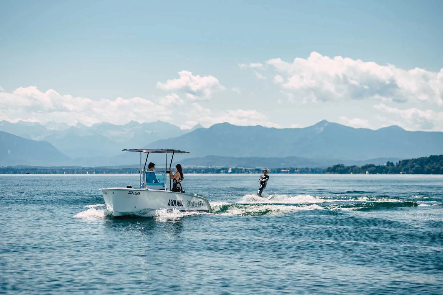 Bis zu 200 km Reichweite im komfortablen Fahrmodus. Die maximale Reichweite im Cruising-Modus beträgt ca. 200 km. Sie können also unbesorgt Ihre Rundreise um den See starten. Bei einer „Schleichfahrt“ mit ca. 5 km/h kommen Sie bei einem Akkupaket mit 40 kWh sogar über 400 Kilometer – nonstop. Sollten Sie dennoch längere Strecken planen, können wir das Akkupaket größer auslegen oder Sie kombinieren Ihr neues Elektroboot mit einem Solar Top und reisen mit Sonnenenergie.